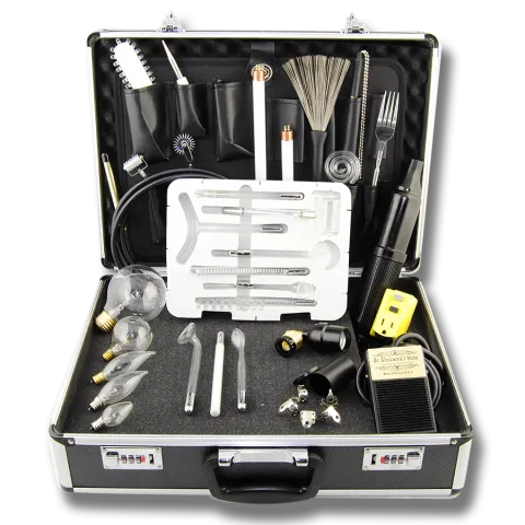 This is quite possibly the most extensive violet wand kit to ever be offered. Containing an ASTOUNDING 11 electrodes, this violet wand kit sets the gold standard for what an advanced violet wand kit should be. This unrivaled masterpiece is the only kit worthy of bearing The Good Doctor's signature.